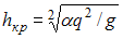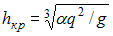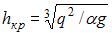 Для прямоугольного открытого русла критическая глубина определяется по зависимости ___________ , где q – удельный расход потока; g – ускорение свободного падения, м/с2;