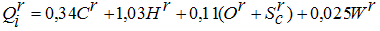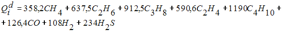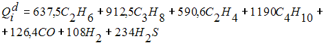 Формула для расчета низшей теплоты сгорания сухой массы газа для газообразного топлива в кДж/м3 имеет вид …• • • •