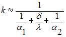 то коэффициент теплопередачи для плоской стенки, представленной на рисунке, имеет вид …