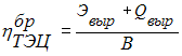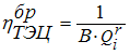 Если выработанная генератором КЭС электроэнергия измеряется в кДж, то КПД «брутто» ТЭЦ вычисляется по формуле …• • • •
