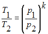 Соотношение между температурами и давлениями в процессе 1 – 2, показанном на графике, представлено формулой …• • • •