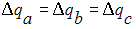 Правильным соотношением для количества теплоты в процессах а, b, c является …