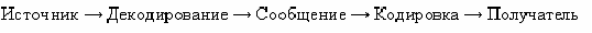 Коммуникационный процесс между двумя собеседниками протекает по схеме …