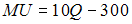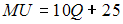 где Q – объем потребления печенья в штуках, TU – величина общей полезности. Функция предельной полезности печенья будет иметь вид …•