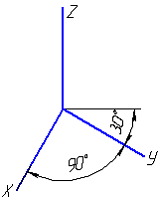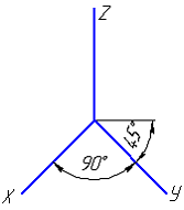Оси стандартной фронтальной косоугольной диметрии изображены на рисунке...