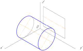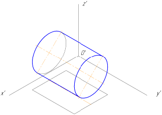При построении прямоугольной изометрии цилиндра, заданного на эпюре Монжа, допущена ошибка на чертеже … • • • •