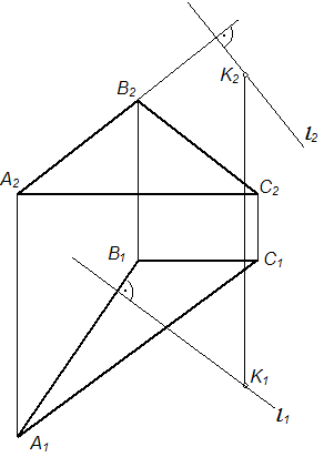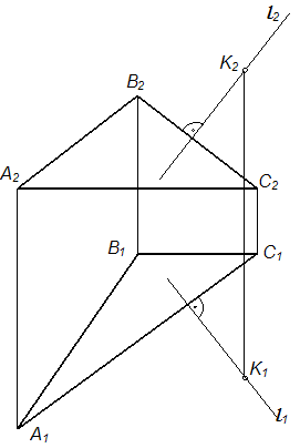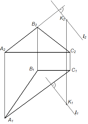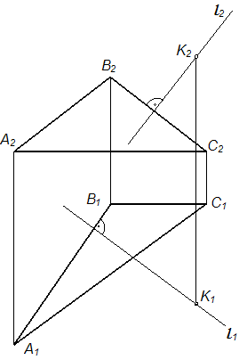 Проекции перпендикуляра l, опущенного из точки К на плоскость Σ (АВС), правильно построены на рисунке …• • • •