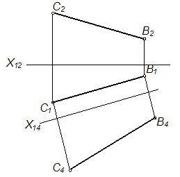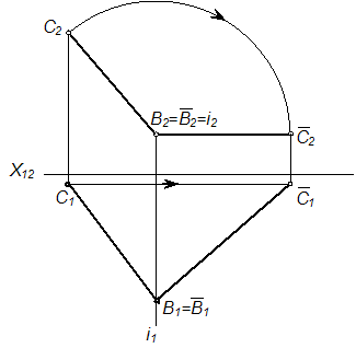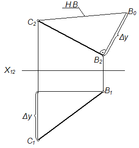 Натуральная величина отрезка прямой способом прямоугольного треугольника найдена на рисунке …