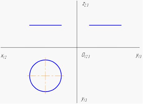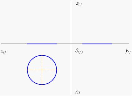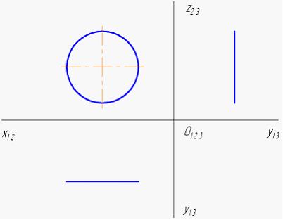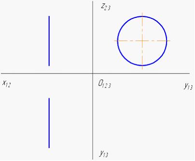 Построена стандартная прямоугольная изометрия окружности. Эпюр Монжа, являющийся установочным чертежом для данного построения, показан на рисунке … • • • •