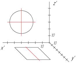 Дан установочный ортогональный чертеж цилиндра. Соотнесите указанную последовательность действий при построении косоугольной фронтальной диметрии цилиндра с изображениями нужных этапов.