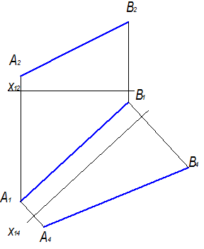 Натуральная величина отрезка прямой найдена способом плоскопараллельного перемещения на рисунке …• • • •