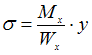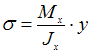Для определения нормальных напряжений в точках поперечного сечения балки при плоском изгибе используется формула …• • • •