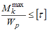 Условие прочности при кручении стержня круглого поперечного сечения с неизменным по длине диаметром имеет вид…• • • •