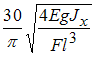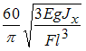 , модуль упругости Е, вес электродвигателя F заданы. Выражение для числа оборотов в минуту электродвигателя, при котором наступает резонанс, имеет вид … Балку с двигателем рассматривать как систему с одной степенью свободы. Массу балки в расчетах не учитывать.•