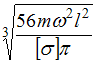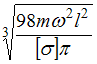 – заданы. Из расчета на прочность по допускаемым напряжениям минимально допустимый диаметр вала равен … Расчет вести по недеформированной схеме. В расчете учесть только силу инерции массы m.•