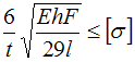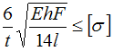 На раму с высоты h падает груз весом F. Размеры l и t, допускаемое нормальное напряжение