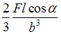 Стержень прямоугольного сечения с размерами b и 2b нагружен силой F, лежащей в плоскости xy. Размер l задан. Нормальное напряжение в точке А равно …• • • •