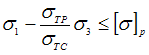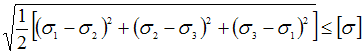 Условие прочности по теории наибольших касательных напряжений имеет вид …