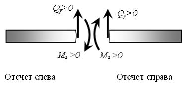 Правило знаков для поперечной силы