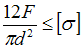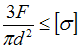 Стержень растянут осевыми силами (см. рисунок). Задана допустимая величина нормального напряжения для материала стержня. Условие прочности имеет вид …• • • •