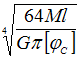 – допустимый угол поворота поперечного сечения С в радианах, G – модуль сдвига материала стержня. Минимально допустимое значение диаметра d равно …