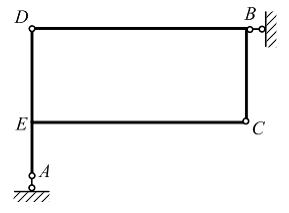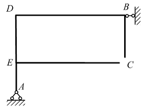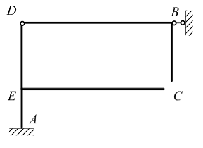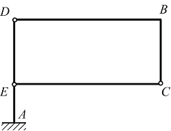 На рисунке показана плоская, статически неопределимая рама и четыре варианта основной системы метода сил. Правильный ответ соответствует варианту...• • • •