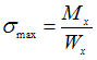 При определении наибольшего нормального напряжения в поперечном сечении балки, при плоском изгибе, используют формулу …• • • •