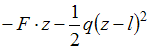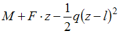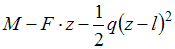 Схема нагружения консольной балки показана на рисунке. Выражение изгибающего момента в сечении с координатой z имеет вид …• • • •