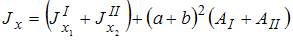 − центры тяжестей прямоугольника, треугольника и всей фигуры. Момент инерции всей фигуры относительно оси x определяется по формуле …
