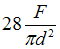Стержень круглого сечения диаметром d нагружен внешними силами. Значение максимального нормального напряжения в поперечном сечении стержня равно …• • • •