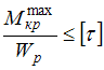 Условие прочности по допускаемым напряжениям при кручении стержня круглого поперечного сечения с неизменным по длине диаметром имеет вид …• • • •