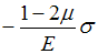 Модуль упругости материала Е и коэффициент Пуассона μ заданы. Относительное изменение объема равно …• 0• • •