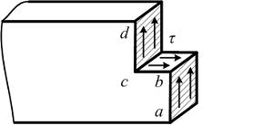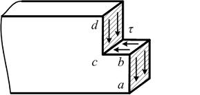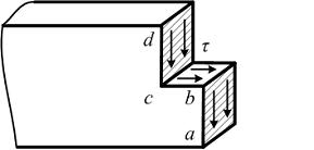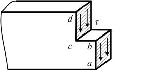 Направление касательных напряжений, передающихся через ступенчатый разрез от правой части балки на левую, показано на рисунке…• • • •