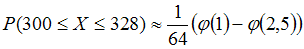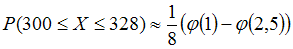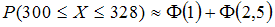 Вероятность появления некоторого события в каждом из 400 независимых испытаний постоянна и равна 0,8. Тогда вероятность того, что событие появится не менее 300 и не более 328 раз, следует вычислять как …