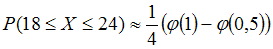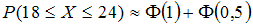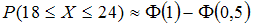 Вероятность появления некоторого события в каждом из 100 независимых испытаний постоянна и равна 0,2. Тогда вероятность того, что событие появится не менее 18 и не более 24 раз, следует вычислять как …