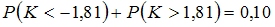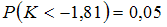 Правосторонняя критическая область может определяться из соотношения …