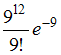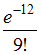 Среднее число самолетов, прибывающих в аэропорт за 1 мин, равно двум. Тогда вероятность того, что за шесть минут прибудут ровно девять самолетов, можно вычислить как …• • • •
