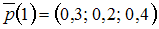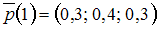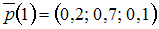 Тогда вектор вероятностей состояний цепи Маркова на первом шаге равен …•