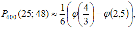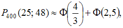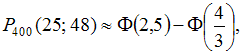 В среднем 10% потенциальных покупателей уходят из обувного магазина с покупками. За день магазин посетило 400 человек. Тогда вероятность того, что покупки совершат не менее 25, но не более 48 человек, следует вычислять как …
